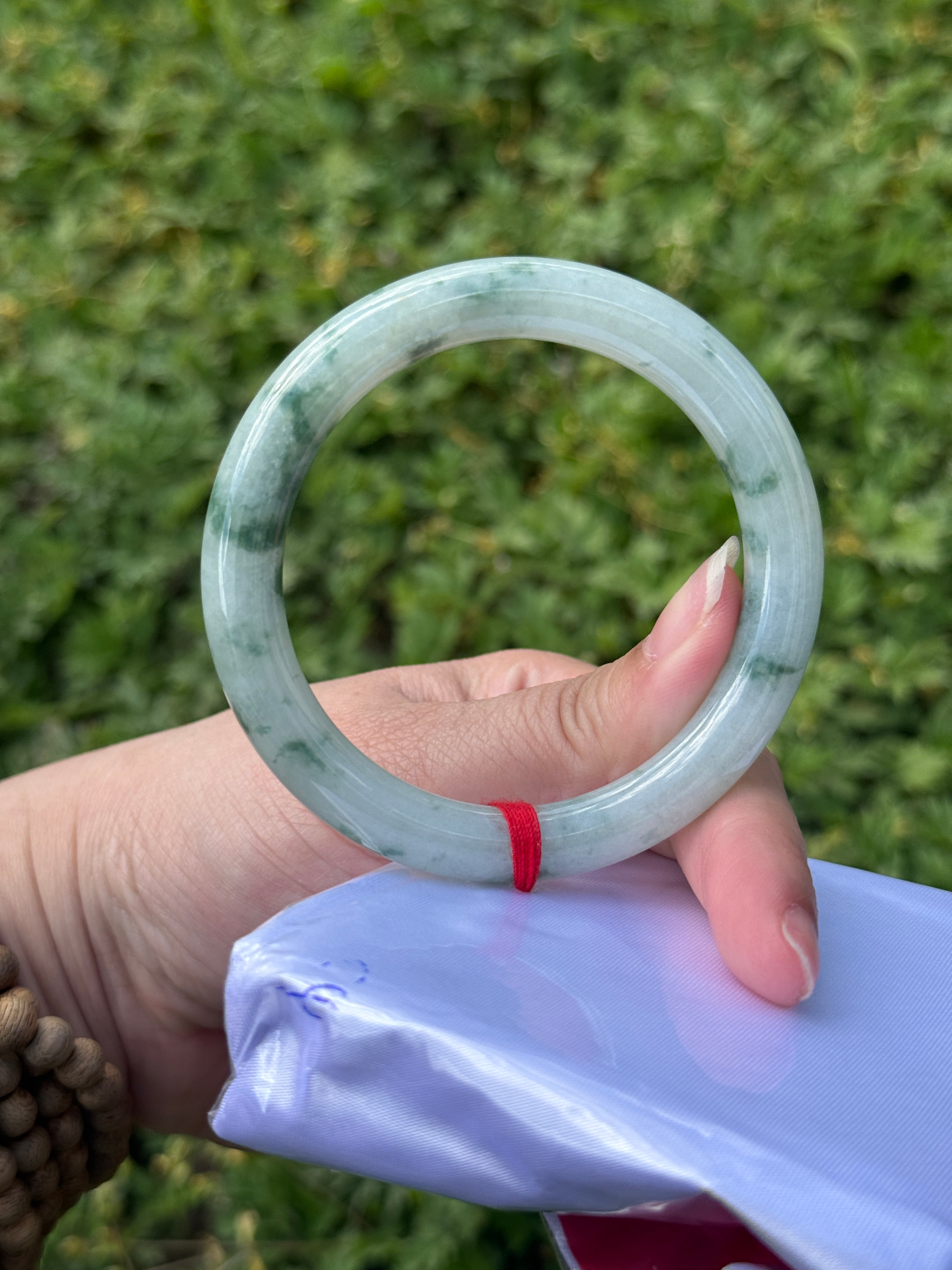 "White Jade with Green Base – Smooth Texture Bangle" SIZE 56 57 58