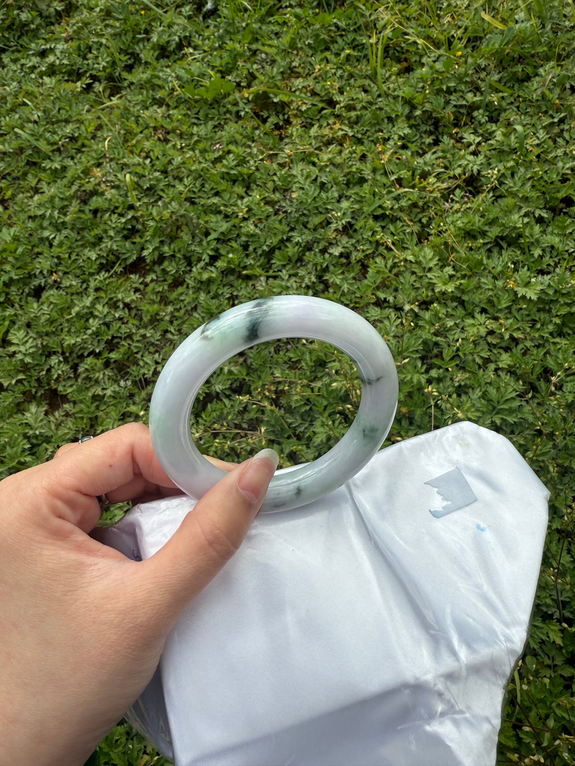 "A beautiful purple jade bangle featuring a smooth ‘flying flower’ pattern. Its gentle textures and rich hue evoke elegance, charm, and timeless beauty."